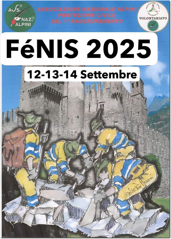 Il borgo di Fénis, con il castello che domina le colline, dal 12 al 14 settembre ha cambiato volto. Non più solamente turisti e passanti, ma un brulicare di divise, mezzi, attrezzature e sorrisi: oltre 210 volontari del 1° Raggruppamento dell'Associazione Nazionale Alpini, giunti da 18 Sezioni, hanno dato vita ad una grande esercitazione di Protezione Civile.